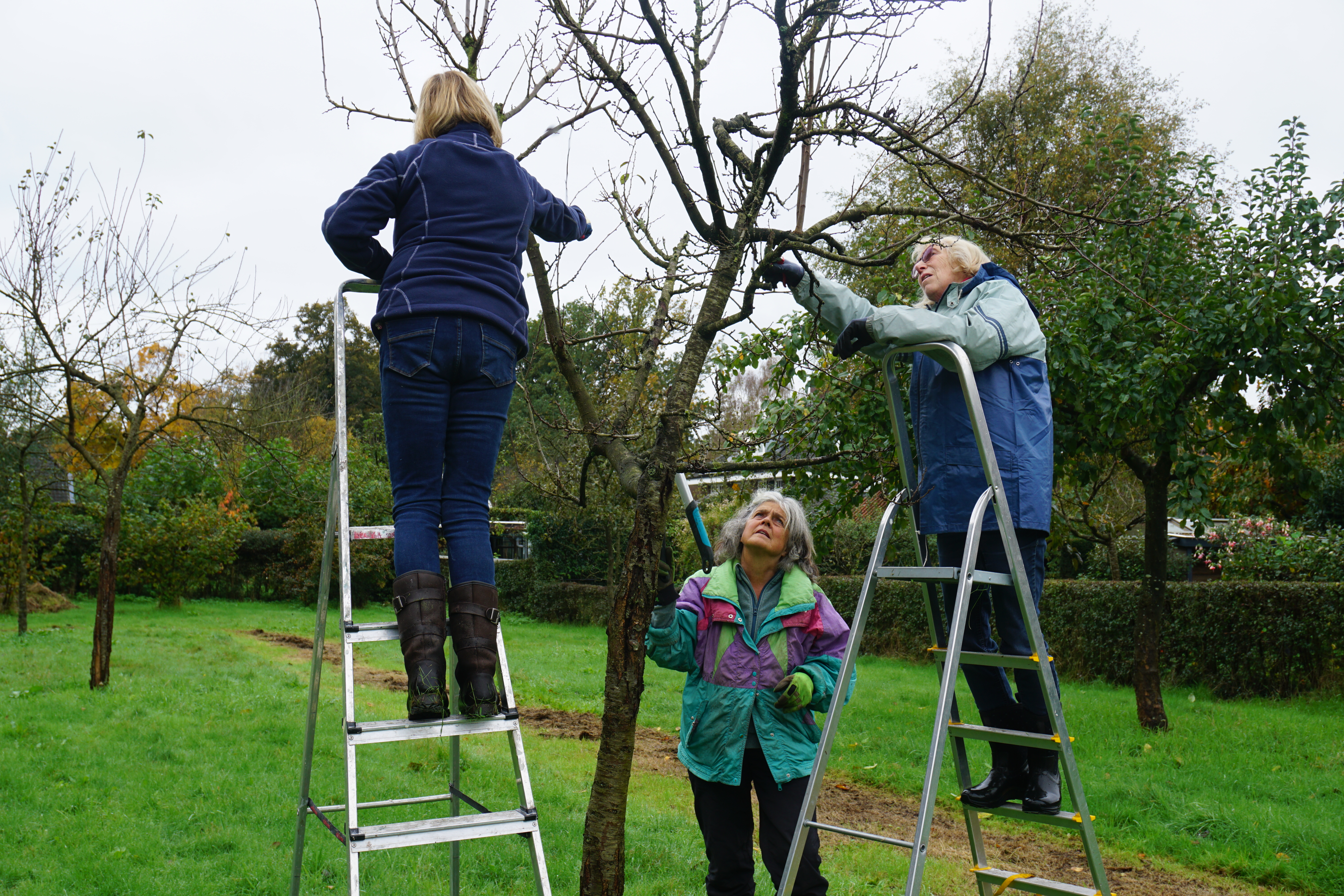 Een boomgaard vraagt onderhoud. Door het jaar heen zijn er verschillende werkzaamheden te doen. Snoeien in de late winter/vroege voorjaar, oogsten in de (late) zomer, en er moet mest gestrooid worden.